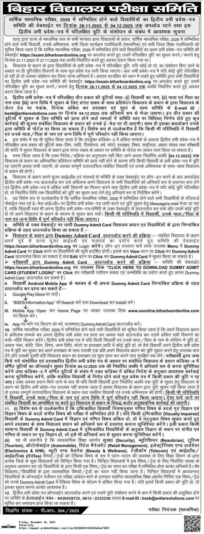 | 2nd Dummy Admit Card | 28 November - 04 December 2025 |