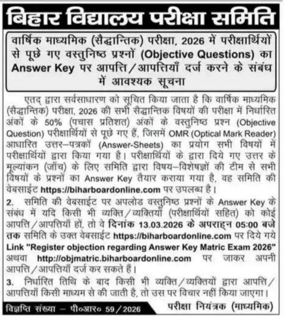 The exams were held from 17 February to 25 February 2026. There is no age restriction besides Bihar Board rules. Students do not need to pay any application fee. Check the results by logging in with your examination roll number and captcha on the official portal.
