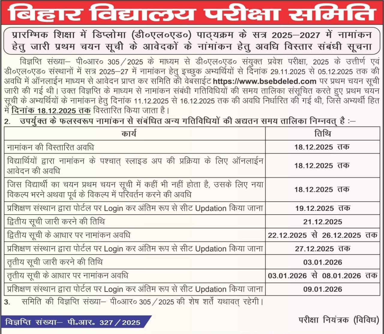 - Look for the "Bihar BSEB DELED Spot Admission 2025-27" link and select it.