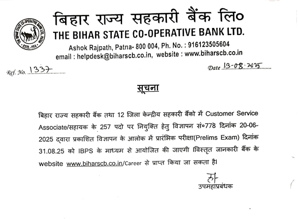 | Organization | Bihar State Co-operative Bank Ltd. (BSCB) |