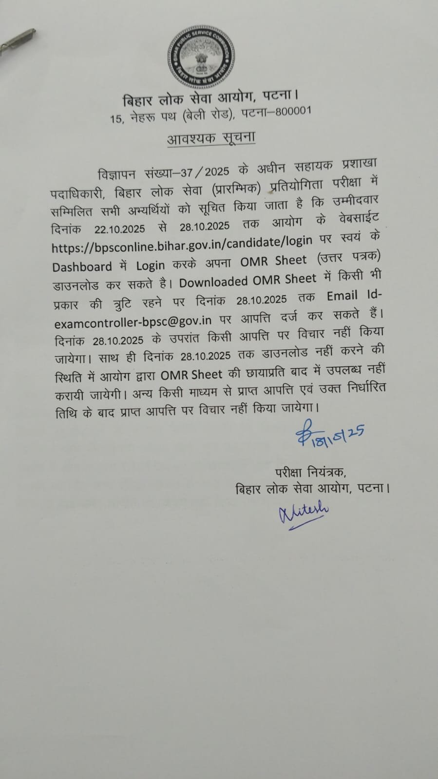 | Official Website | https://bpsc.bihar.gov.in/ |