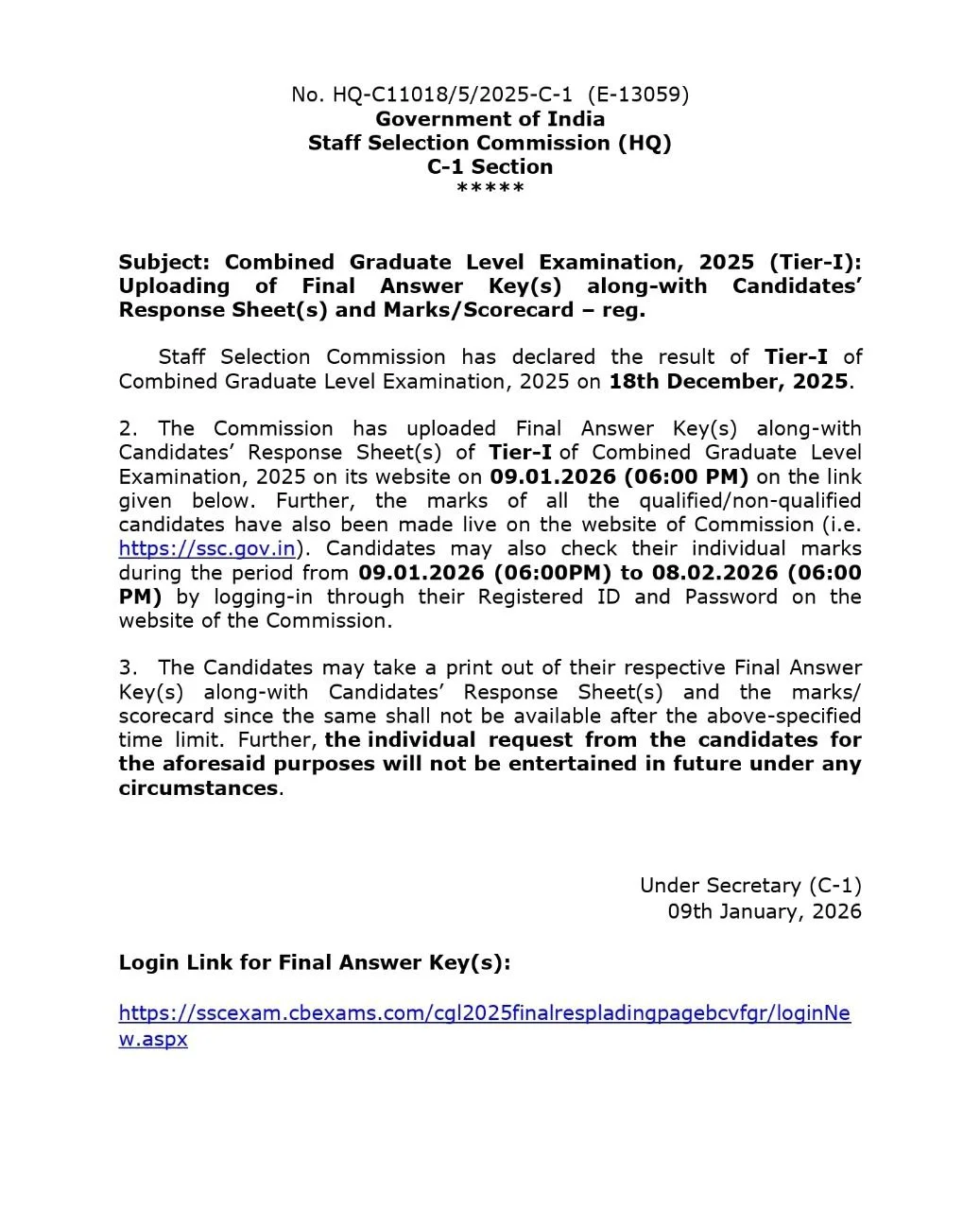| Check Tier-I Final Answer Key Notice | Click Here |